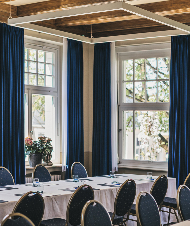 Platz finden in der Löwenburg bis zu 40 Personen, je nachdem, welche Tischformation Sie wählen. Nutzen Sie den Raum für einen Empfang, ist er sogar für bis zu 50 Personen geeignet. Wir freuen uns, Ihre Tagung mit Ihnen zu planen.